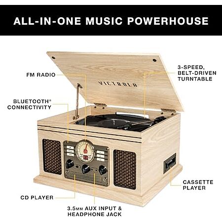 $89 | Victrola The Quincy 6-in-1 Bluetooth Record Player & Multimedia Center with Built-in Speakers at Amazon