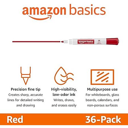 Amazon[amazon.com] has 36-Count Amazon Basics Low-Odor Dry Erase Whiteboard Markers, Fine Tip, Red for $9.40. Shipping is free with Prime or on $35+ orders.