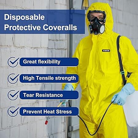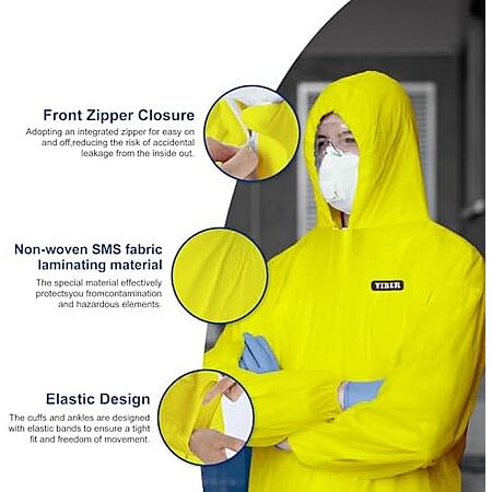 Model: YIBER Hazmat Suit Disposable Coverall | Heavy Duty Full Body Paint Coverall & Suit in 7 Sizes - Large, Yellow, 1