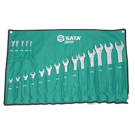 Professional tool set includes 1/4, 9/32, 5/16, 11/32, 3/8, 7/16, 1/2, 9/16, 5/8, 11/16, 3/4, 13/16, 7/8, 15/16, 1 , 1-1/16, 1-1/8, 1-3/16 and 1-1/4" sizes.