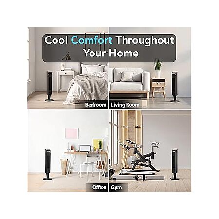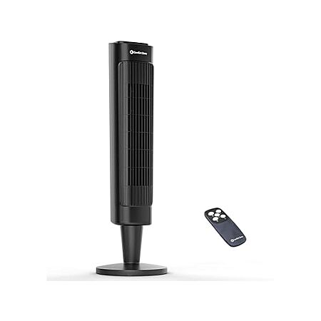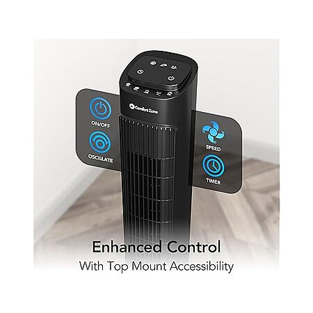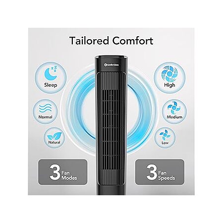 $20.99*: Comfort Zone 36” Tower Fan with Remote Control for Home, 60 Degree Oscillation, 3 Speeds, 12H Timer, Carry Handle, Black