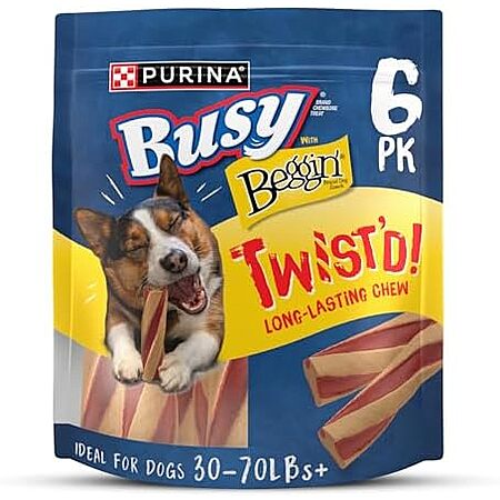 [S&S] $4.75 | Purina Busy with Beggin’ Twist’d Adult Dog Chew Bone Treats - 6 ct. Pouch at Amazon