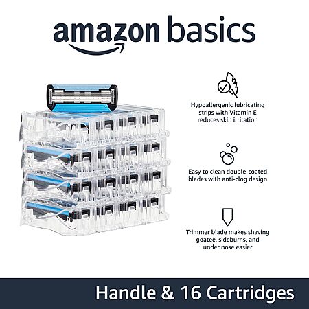 [S&S, AC] $14.04*:17-Piece Amazon Basics 5-Blade MotionSphere Razor for Men (Handle & 16 Cartridges) at Amazon