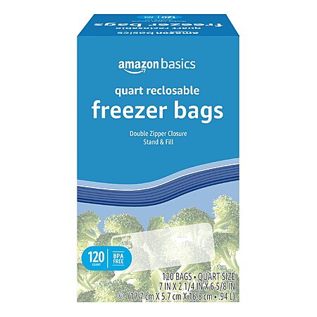 $6.01 120-Count Amazon Basics Double Zipper Freezer Bags (Quart size) with S&S