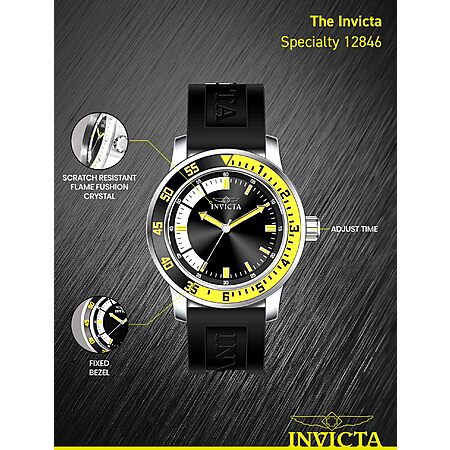 Model: Invicta Men's 12846 Specialty Black Dial Watch, Black/Yellow