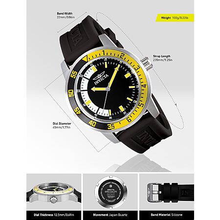 $26.9*:Invicta Men's 12846 Specialty Black Dial Watch, Black/Yellow