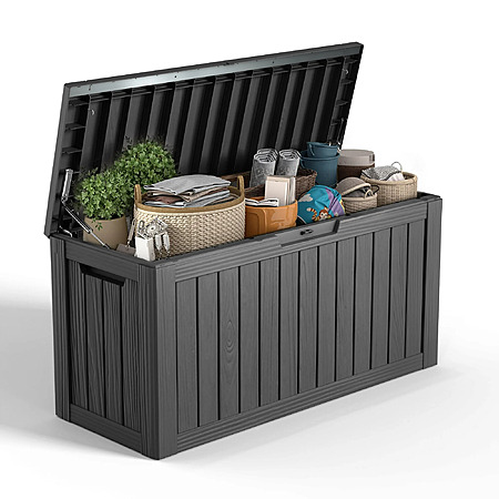 Easy Up 80 Gallon Resin Deck Box, Lockable Patio Outdoor Storage Box for Furniture, Garden Tools and Tools Storage, Waterproof $48.99
