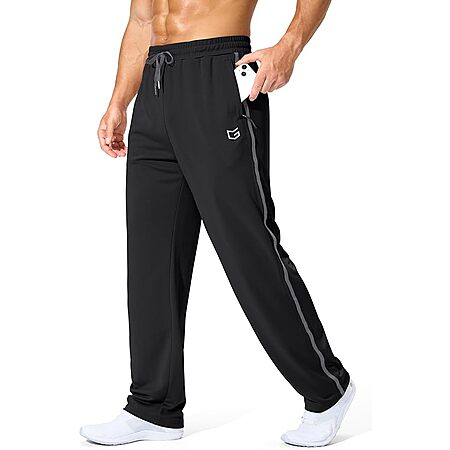 G Gradual Men's Athletic Sweatpants with Zipper Pockets Lightweight Quick Dry Mesh Workout Pants Open Bottom for Casual (Various)
