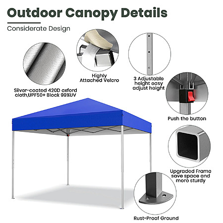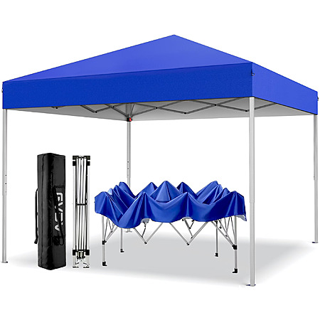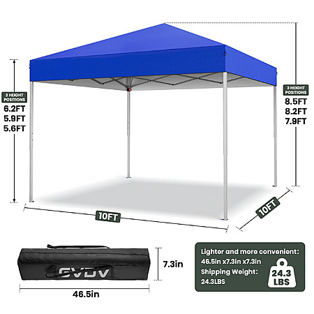 $69.99*:GVDV Canopy Tent, 10x10 ft Easy Pop up Outdoor Canopy Tent, Portable Straight Leg Gazebo Instant Canopy, Blue/Gray/Green