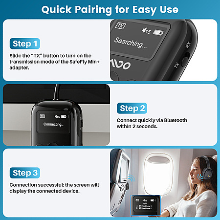 - The SafeFly Min+ features the latest Bluetooth 5.4 technology for quick pairing and strong wireless audio transmission, with a range of up to 70 feet (line-of-sight distance). Additionally, the Bluetooth adapter supports simultaneous connections to two devices (such as two headphones or two speakers).
