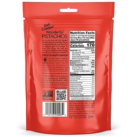 Wonderful Pistachios No Shells, Chili Roasted Nuts, 11 Ounce Resealable Bag, Protein Snacks, Gluten Free College Snacks, Healthy Snacks for Adults~$8.24 After Coupon & S&S @ Amazon