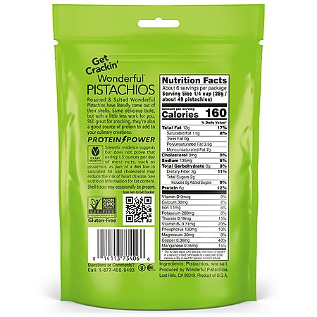 Wonderful Pistachios No Shells, Roasted & Salted Nuts, 6 Ounce Resealable Bag, Protein Snacks, Gluten Free, Healthy Snacks for Adults~$4.52 After Coupon & S&S @ Amazon