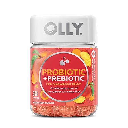 S&S OLLY Probiotic + Prebiotic Gummy, Digestive Support and Gut Health, 500 Million CFUs, Fiber, Adult Chewable Supplement for Men and Women, Peach, 30 Day Supply - for $3.97