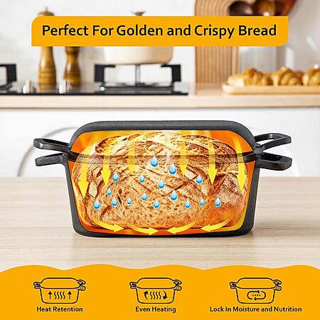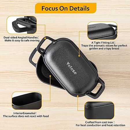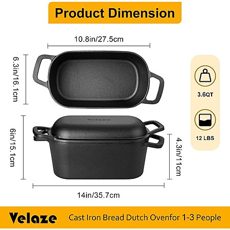 Model: Velaze 3.6QT Dutch Oven for Bread Baking,Oval Cast Iron Bread Oven Pan with Lid and Offset Handles,Oven Safe to 500°F for Homemade Sourdough Bread(Black)