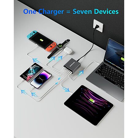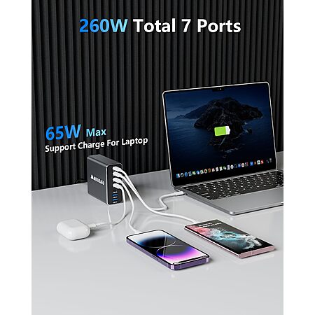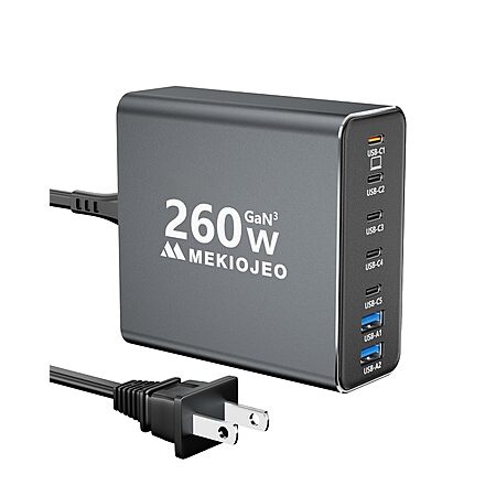 MEKIOJEO 260W 7-Port USB-C GaN 3 Aluminum Alloy Wall Charger (Grey) $23.19 + Free Shipping w/ Prime or on $35+