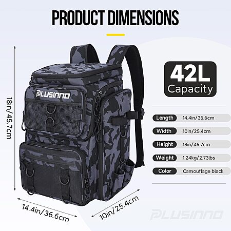 Amazon.com has PLUSINNO Fishing Backpack with Rod Holders Tackle Box, 42L Large Water-resistant Fishing Tackle Bag Store Fishing Gear on sale for $29.92. Shipping is free with Prime or on $35+ orders.