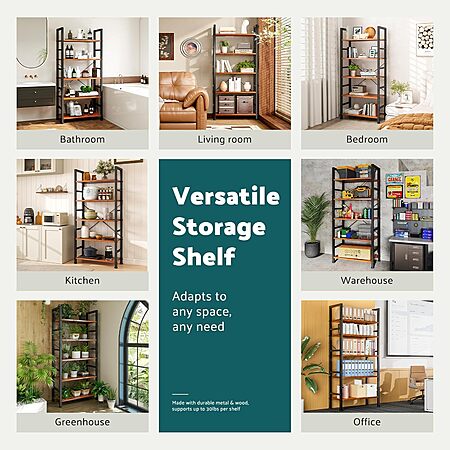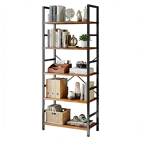 NEWBULIG 5 Tier Book Shelf w/ Metal Frame and Wooden Shelves for $37.86 w/on page clipped coupon.