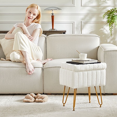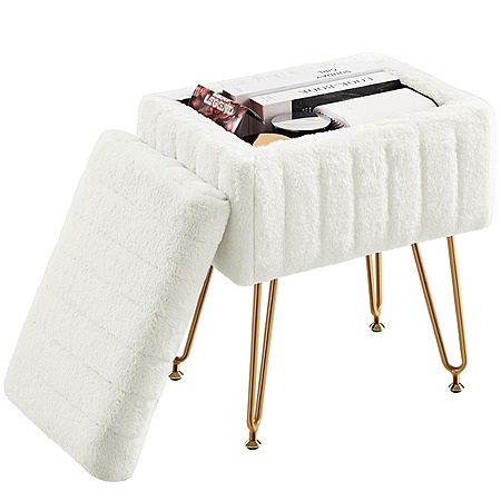 NEWBULIG Faux Fur Vanity Ottoman with Storage $26.99 + Free Shipping w/Prime or $35+