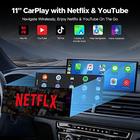 Volam 11'' Wireless Touchscreen Carplay Screen w/.Youtube, Netflix, Android Auto, Backup Camera & More $120 + Free S/H
