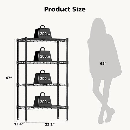 Model: DUMOS 4-Tier Metal Wire Storage Shelves, Adjustable Standing Storage Rack Shelf, Heavy Duty Steel Shelving Unit Organizers for Kitchen Bathroom Pantry Garage, 23.3" W×13.4" D×47" H, Black