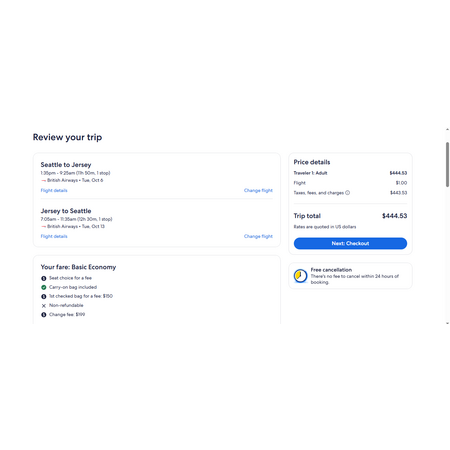 British Airways via Expedia have round trip airfares travelling from Seattle (SEA) to Jersey (JER) for $445, making 1 stop in London both ways. These are basic economy fares that allow a personal item and a carry-on bag. There is no seat selection and no change.