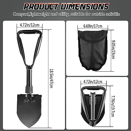 PLACHIDAY Folding Shovel, 18.5'' Lightweight Camping Shovel, High Carbon Steel Folding Mini Trowel $8.99