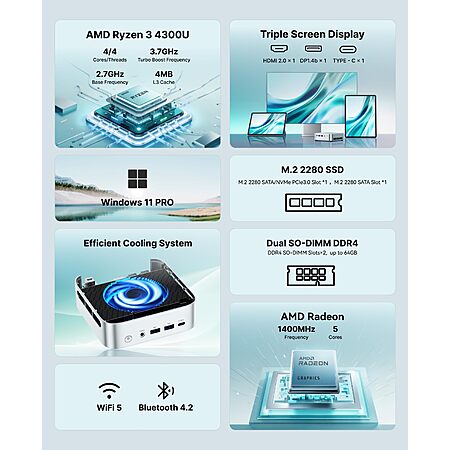 Model: ACEMAGIC Mini Pc Computers, Intel Twin Lake N150(Turbo 3.6GHz), 16GB DDR4 RAM 1TB PCIe M.2 SSD Mini Computer, Vista V1 UHD 4K HDMI DP, Dual WiFi/Bt, Gigabit Ethernet Vesa, Home/Office Micro Pc