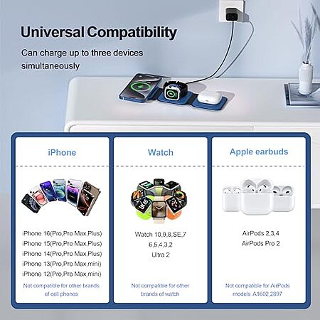 Ucomx 3-in-1 Foldable Wireless Charger Station for Multple Devices (Classic Blue) $20.02 + Free Shipping w/ Prime or on $35+