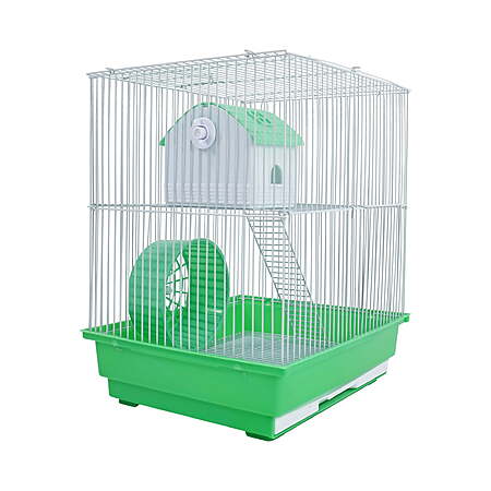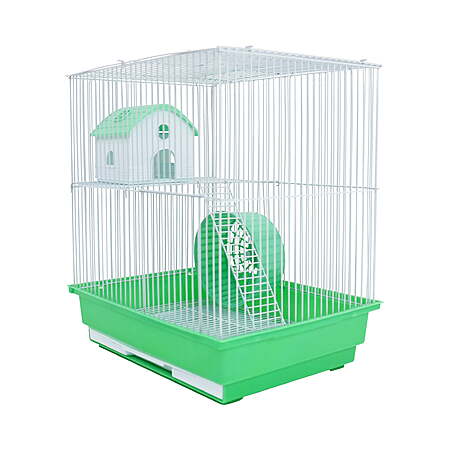 Two Story all-inclusive habitat is perfect for your hamster or gerbil. This cage is complete with color coordinating ladder, platform and little house to provide a place to play and hide while fulfilling all your pets natural instincts. Also included is an exercise wheel to keep your hamster or gerbil entertained and physically active. A bonus feature is the top-opening door, allowing you entry to both levels of this two-story cage, plus a removable bottom grate and pull-out tray for convenient cleaning. Includes color coordinating ladder, platform, exercise wheel, and little house. Removable bottom grate and pull-out tray for convenient cleaning Multi-level Habitat