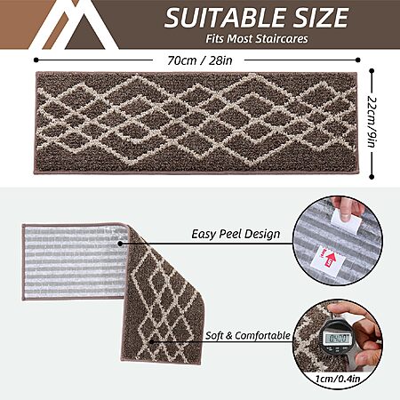 7-Piece Cosy Homeer Non-Slip Soft Stair Treads Carpet Mat (Brown/Rhombus, 28" x 9") $17.49 + Free Shipping w/ Prime or on $35+