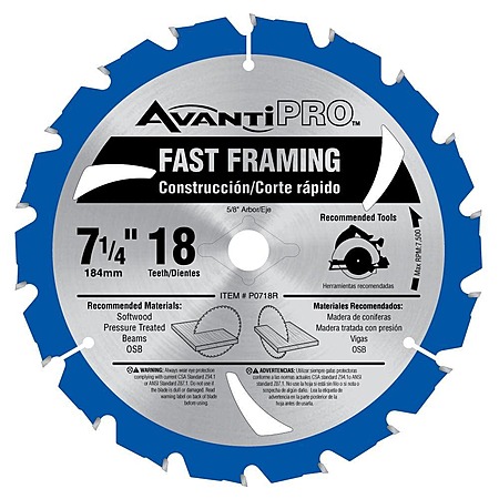 Avanti Pro 7-1/4 in. x 18-Teeth Fast Framing Saw Blade, $2.88, free shipping, Home Depot