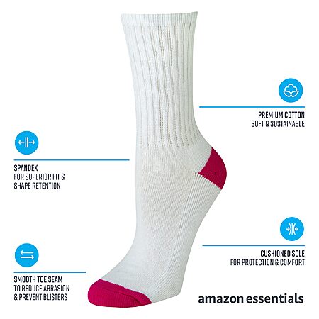 10-Pairs Amazon Essentials Women's Cotton Crew Socks (Pink/Grey/White, sizes 6-9) $3.97 ($0.39/pair) w/ S&S + Free Shipping w/ Prime or on $35+