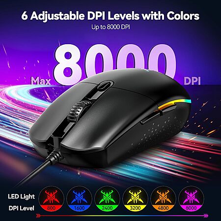 Prime Members: TECKNET 8000 DPI 1000Hz Wired Optical Gaming Mouse with 6 Programmable Buttons on sale for $9.99 - 30% off when you