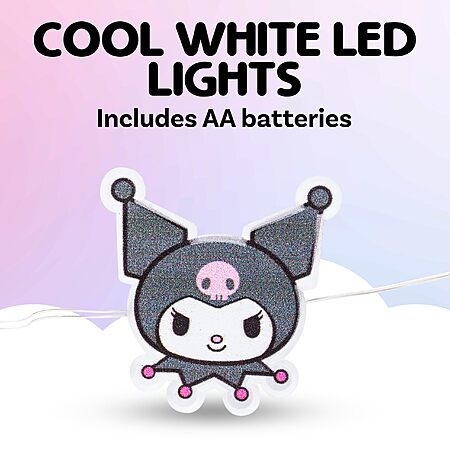 • FAVORITE FEATURES: Battery-powered with 2 AA batteries included, this lightweight indoor-only LED set offers easy and flexible placement anywhere. The soft glow highlights Kuromi's signature punky style—straight from her adventures with Baku and beyond.