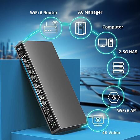 GigaPlus 10 Port 2.5Gb Unmanaged Ethernet Switch with 8x2.5G Base-T Ports, 2x10G SFP+ Ports $63.90