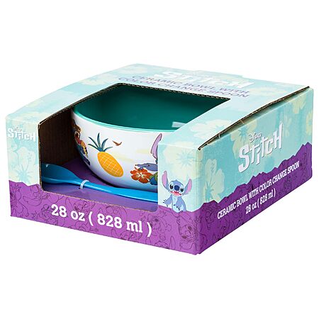 Silver Buffalo Disney Lilo and Stitch Tropical Ceramic Bowl with Color Changing Spoon Featuring Stitch, 28 Ounces $10.32