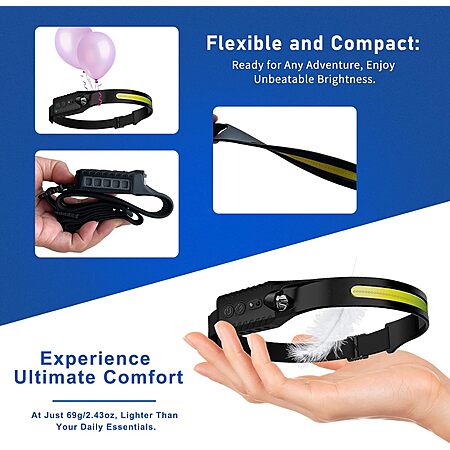 Nessciera Direct via Amazon has 3-Pack 400-Lumen Nessciera Wide Beam LED USB-C Rechargeable Headlamp w/ 5 Lighting Modes on sale for $5.94. Shipping is free w/ Prime or on $35+ orders.