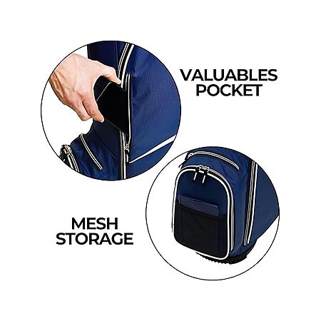 - Premium Features: Our cart golf bag includes 6 total pockets, including a valuables pocket, single carry strap, umbrella holder, glove holder, towel clip, and rain hood