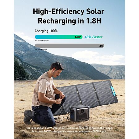 Model: Anker SOLIX C1000 Portable Power Station with 200W Solar Panel, 1800W Solar Generator, 1056wh LFP (LiFePO4) Battery, 6 AC Outlets, Up to 2400W for Home, Power Outages, and Outdoor Camping