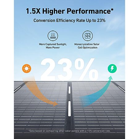 1.5X Higher Conversion Efficiency: Convert up to 23% of sunlight into solar power. Monocrystalline solar cells and a powerful sunlight-trapping surface achieve 1.5X higher conversion efficiency than other models.