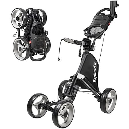 $111.02* | CaddyTek Explorer V8 SuperLite 4 Wheel Golf Push Cart (Dark Grey) at Amazon