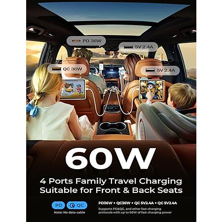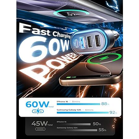 [AC] $4.49* | LISEN 4-Port up to 60W Car Charger w/ 3x USB-A, 36W USB-C PD at Amazon
