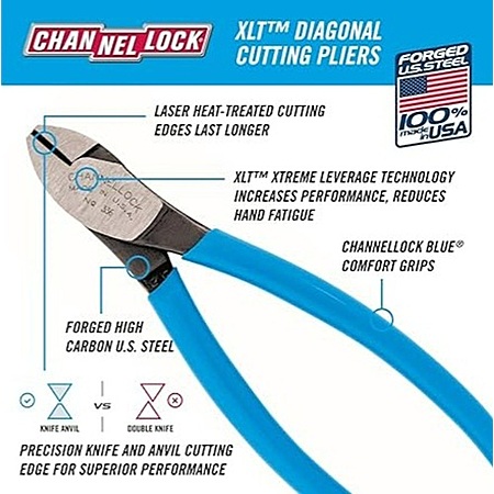 CHANNELLOCK 336 6-inch XLT Diagonal Cutting Pliers, Knife and Anvil Style Cutting Edge for Superior Cutting Edge Life, Forged High Carbon Steel, Made in the USA