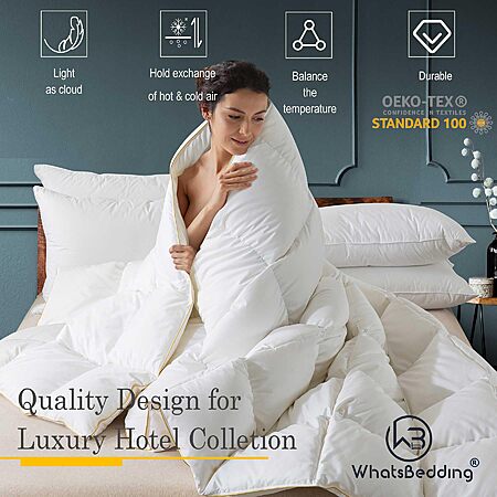 Vexino Puffy White Feather Comforter Queen Size with Feathers Down Fiber Filled $29.99