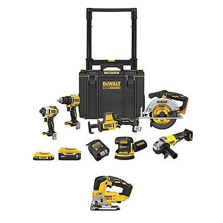 DeWalt 20V Cordless 6-Tool Combo Kit Brushless Jigsaw with 5 Ah and 2 Ah Batteries Charger and Rolling Toolbox $588