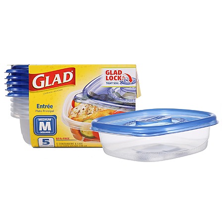 Glad Food Storage Containers for Everyday Use, Medium Square - Standard Meal Container Holds up to Twenty-Five Ounces, Blue, 25 oz - 5 Count $4.79 +FS w/Prime