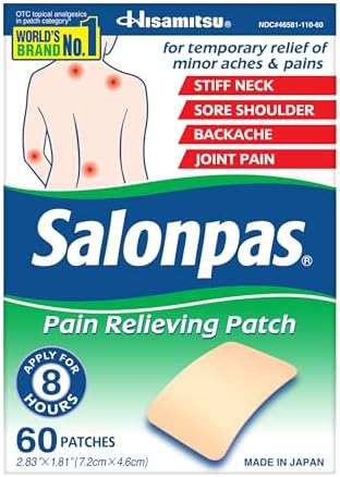 Model: Salonpas Pain Relieving Patch for Back, Neck, Shoulder, Knee Pain and Muscle Soreness - 8 Hour Pain Relief - 60 Count