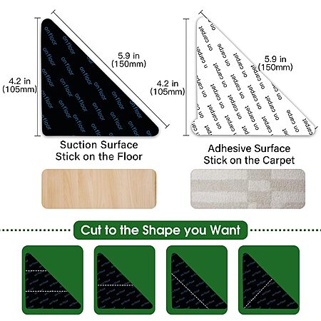 • Easy Installation: Dual-side stickers (white & clear) for quick, secure attachment to rugs and floors.