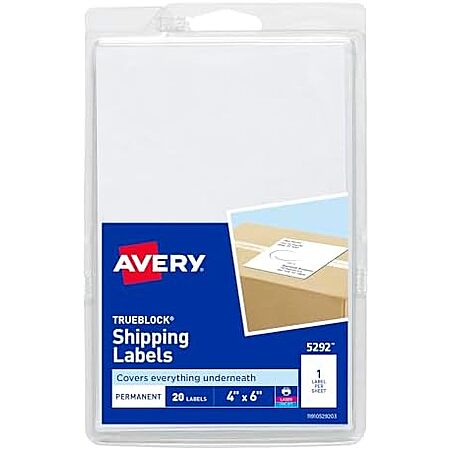 $4.39 | Avery Printable Shipping Labels, 4" x 6", White, 20 Blank Address Labels (05292) at Amazon