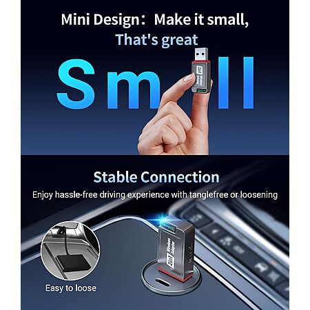 Deal Details: Convert wired CarPlay or Android Auto to wireless with this ultra-compact mini USB adapter. One of the smallest adapters available - plugs almost flush into your car's USB port.